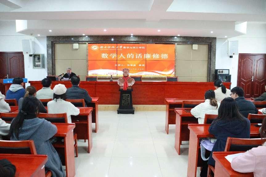 “光荣在党50年”老党员刘钊南教授以《数学人的话廉修德》为主题开展了党课活动,从“筑牢思想防线、严守纪律规矩、涵养道德修养、践行担当作为”四个方面进行阐述,他强调党员持续加强理论学习,如同数学证明需要严谨推导,建立清晰的是非观、义利观;数学运算需要遵循运算法则,作为党员更要自觉遵守党的各项纪律。