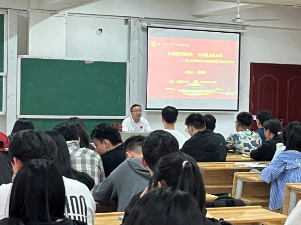 为巩固深化党纪学习教育成果,锲而不舍深入贯彻中央八项规定精神学习教育,持续推进作风建设常态化长效化。5月29日,院党委书记刘辉亚在立志楼A101以“作风建设强党性使命担当铸忠魂”为主题讲授专题党课。本次党课由张翼主持,本科生第二、第三党支部全体党员参加学习。