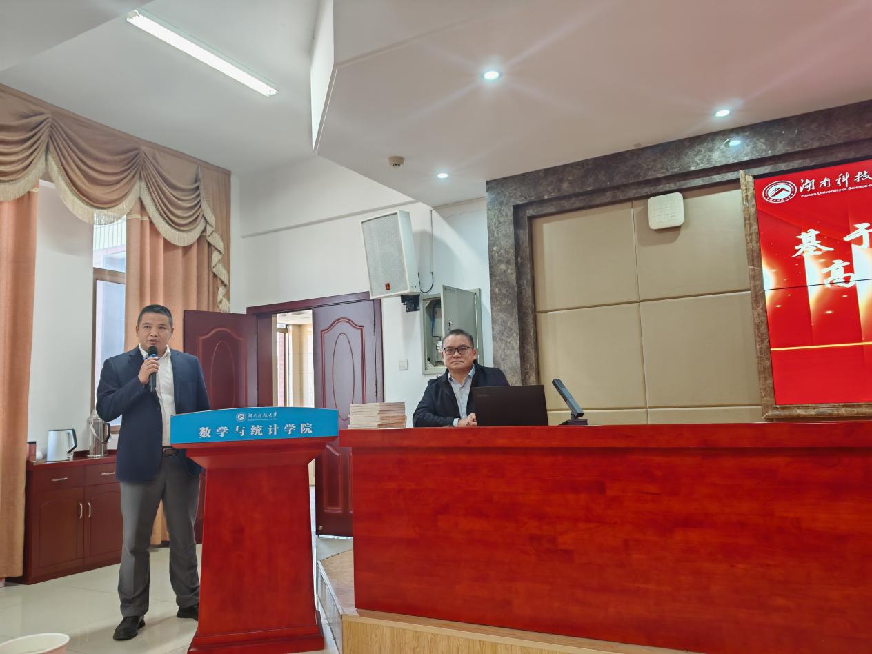 2025年11月14日下午,湖南科技大学数学与统计学院邀请湘潭县一中齐学军书记,在立志楼A601举办了《基于核心素养背景下的新高考高中数学教学的思考与实践》分享会,为2022级数学与应用数学师范生的教育研习活动助力。活动由汪卫副院长主持,湘潭县一中教师发展中心张新元主任、数学系丁爱霞副系主任及学生共同参加。