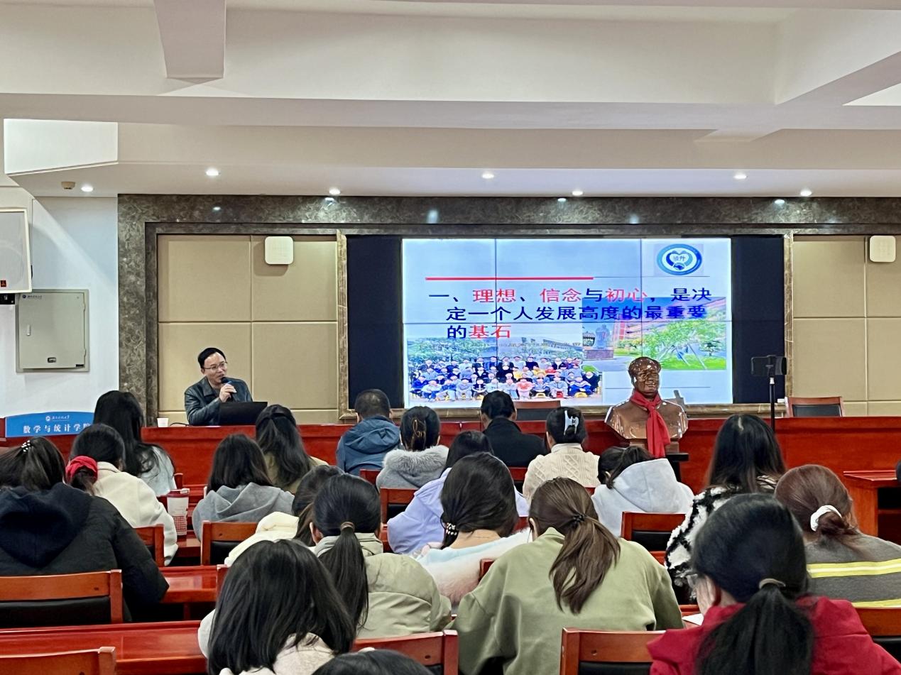 2025年11月27日下午,湖南科技大学数学与统计学院邀请优秀校友、雅礼外国语学校杨晓雄书记,在立志楼A601举办了《心田种桃李,妙手育杏林》分享会,为2022级数学与应用数学师范生的教育研习活动赋能。活动由汪卫副院长主持,傅湘陵教授、丁爱霞副系主任及学生共同参加。