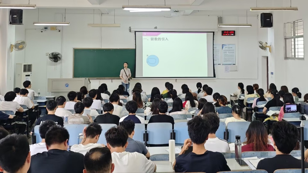课程伊始,陈静教授通过几何直观引出“留数”这一关键概念。她强调:“留数是解析函数在孤立奇点处的‘局部特征’,其本质是函数在该点洛朗展开式中负一次幂项的系数。”配合板书推导,陈静教授将抽象的数学定义转化为可视化的动态过程,帮助学生突破认知难点。