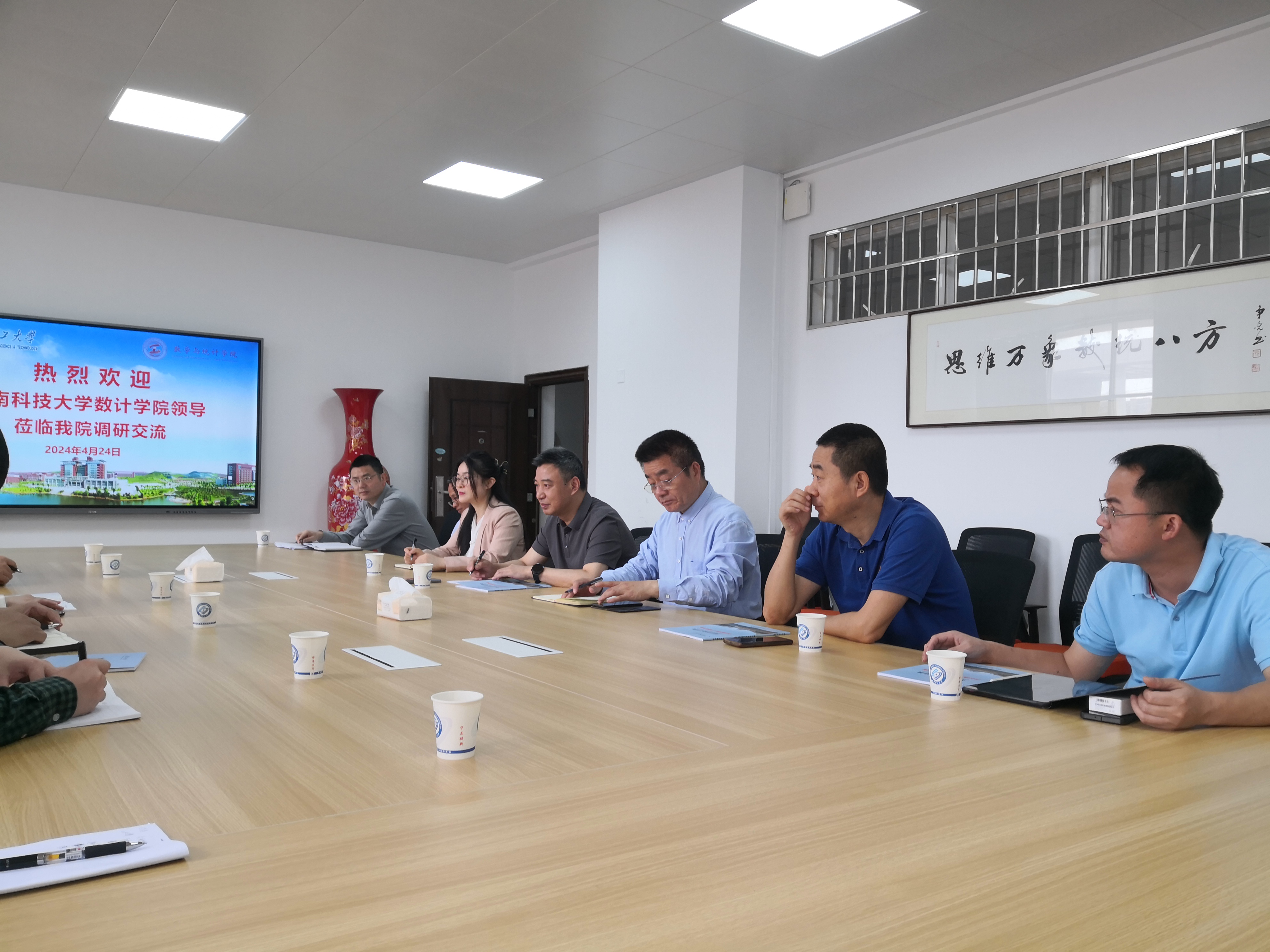 2024年4月24日上午,学院主持行政工作副院长李冬梅、教学副院长汪卫、信计系主任刘灯明、统计系主任李正阳、基础系主任谭敏、数学系副主任丁爱霞一行六人赴长沙理工大学数学与统计学院调研交流。
