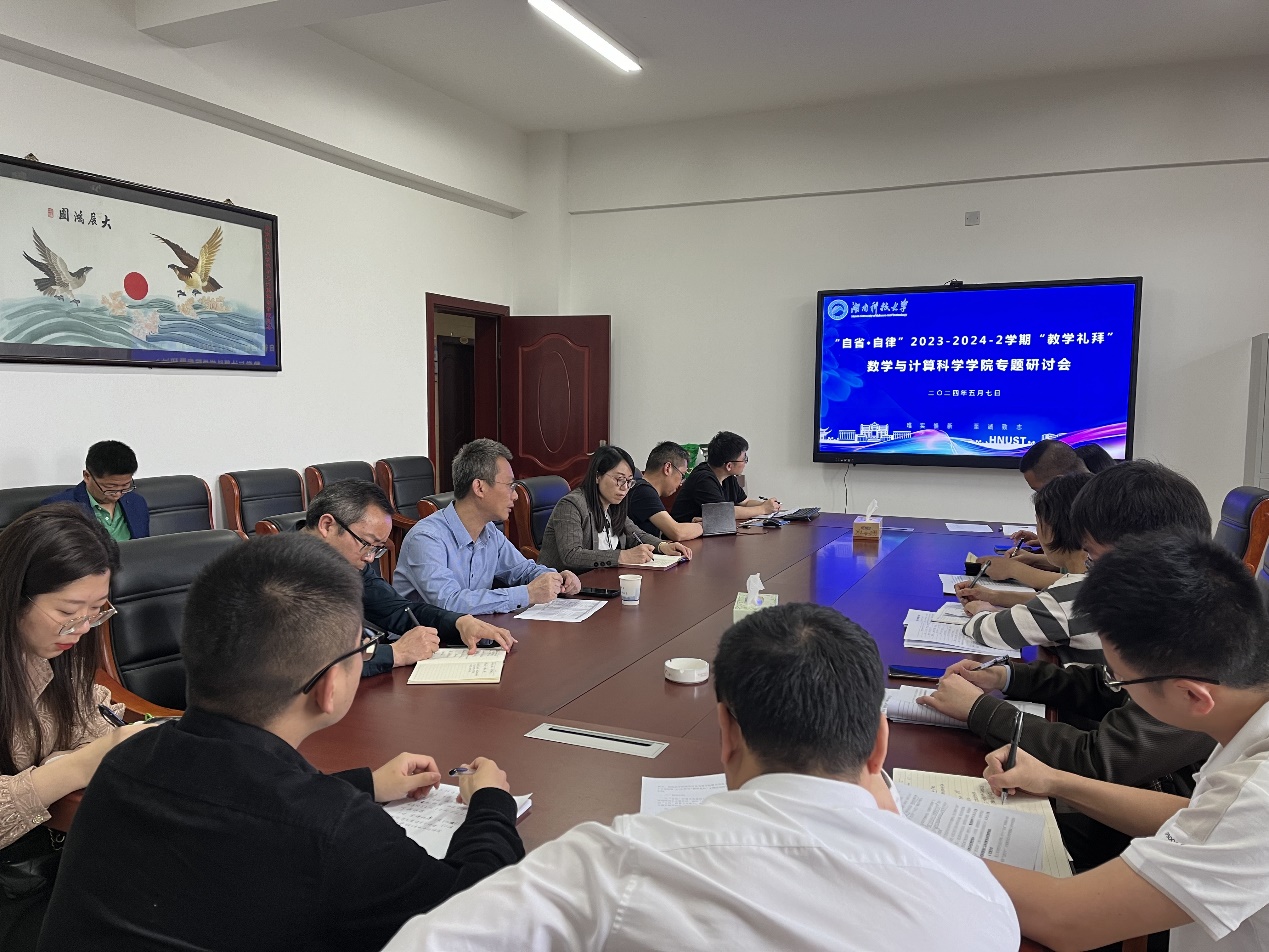 5月7日下午,我院在立志楼A423召开以“自省•自律”为主题的2023-2024学年第二学期“教学礼拜”专题研讨会,会议由教学副院长汪卫主持,党委书记刘辉亚、主持行政工作副院长李冬梅、副院长王卫兵,以及系主任、教务办主任和教师代表参会。会议期间,教务处处长余伟健、办公室主任李婷到会参与讨论。
