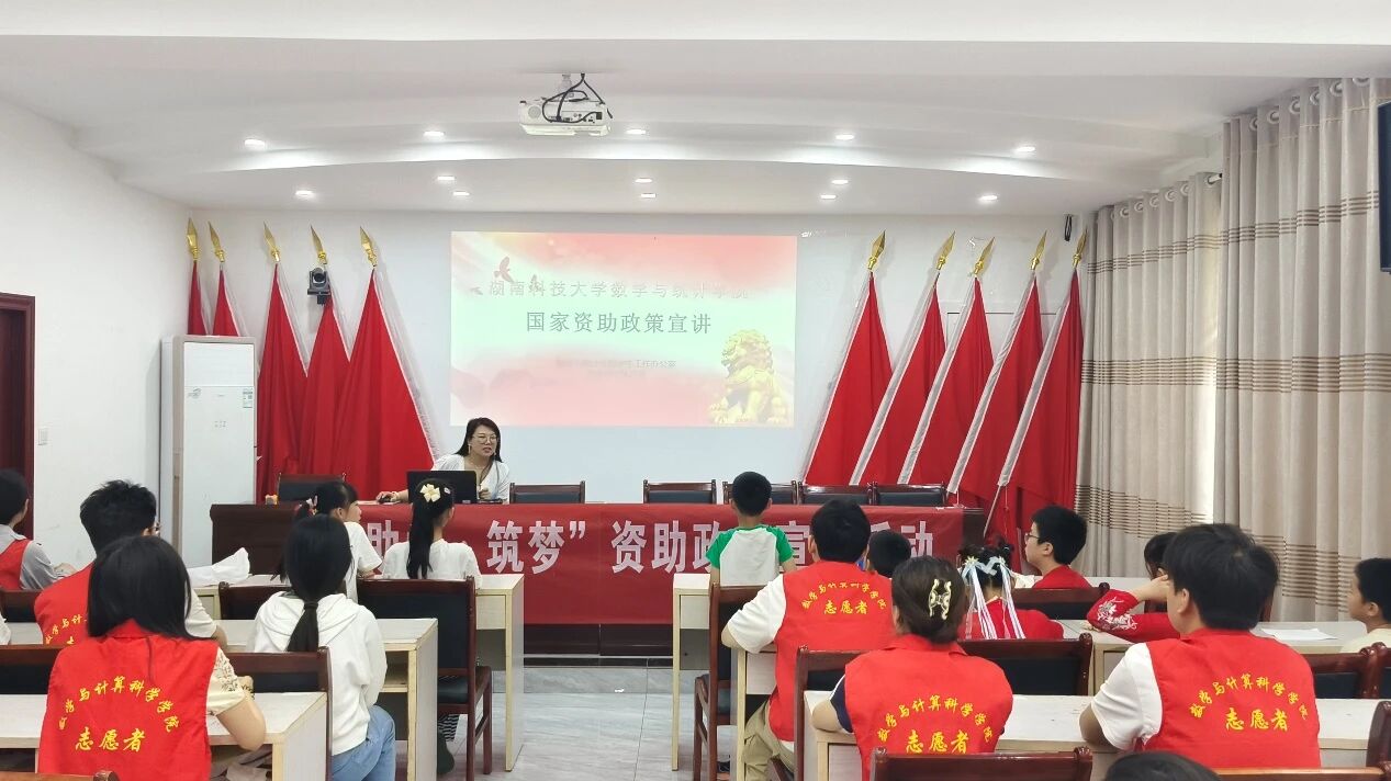 2025年5月25日,湖南科技大学数学与统计学院本科生第五党支部联合数梦空间志愿服务队、勤工部、青志协,走进合山社区开展特色教育课堂。活动以国家资助政策宣讲为依托,以“两弹一星”精神传承为内核,双轨并行打造“助学安心·科技励志”育人场景,为孩子们的成长注入政策温度与精神力量。