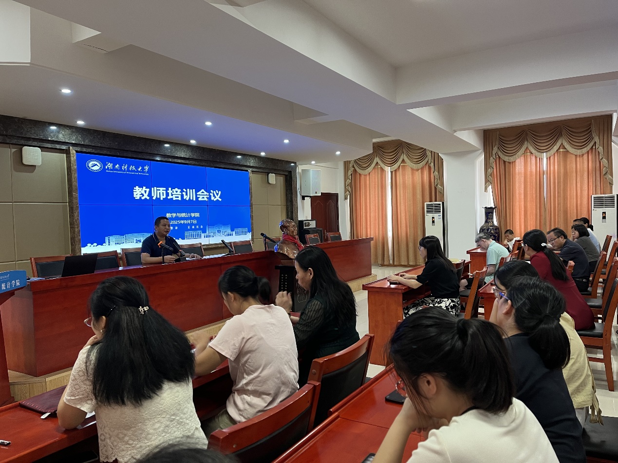 2025年,9月7日,数学与统计学院在立志楼A601会议室召开全体教师新学期教学规范培训会议。会议由教学副院长汪卫主持,全院专任教师参加。
