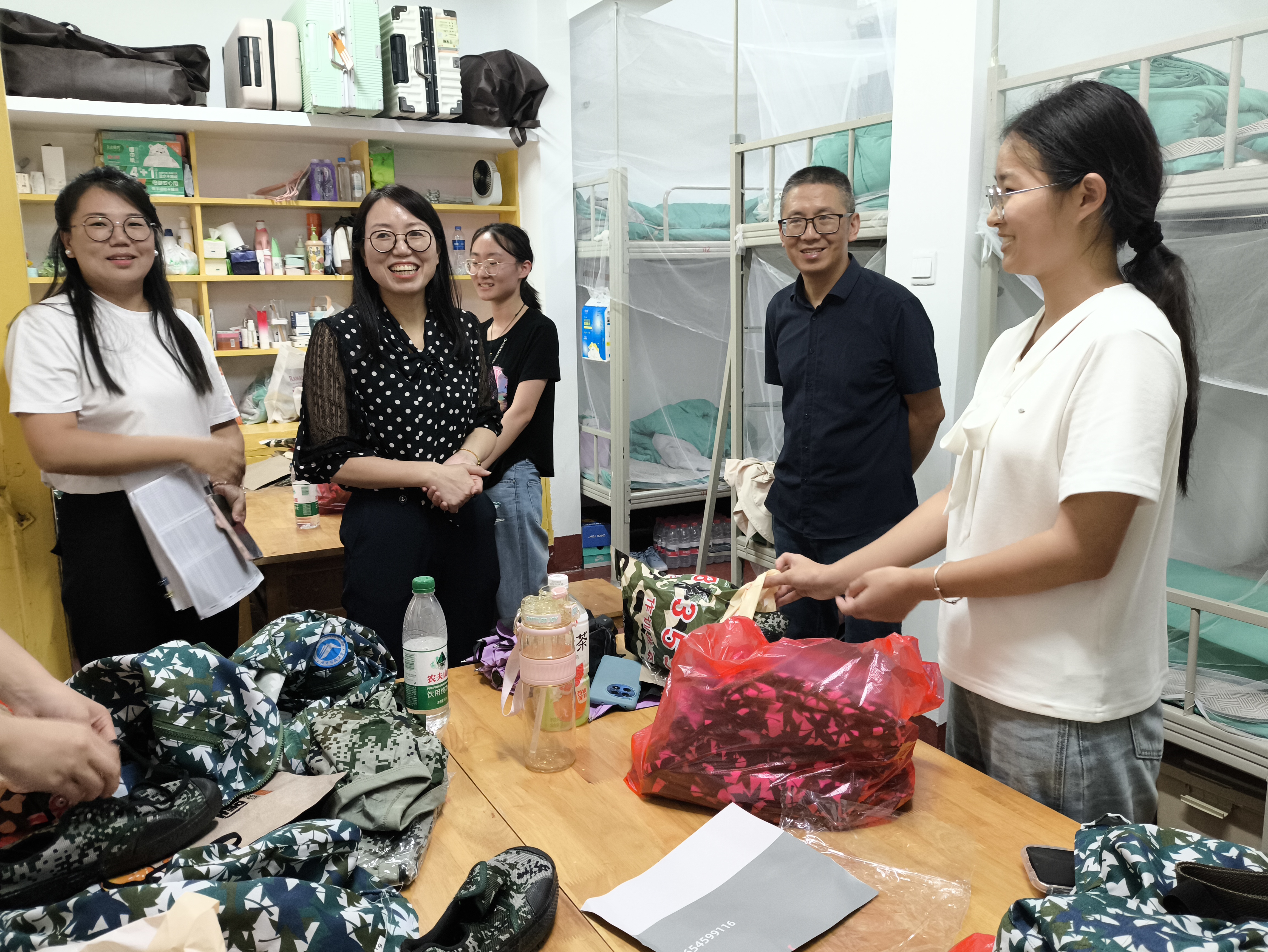 新学期伊始,为深入了解2025级新生入校后的思想动态、适应情况以及实际需求,保障新生入学各项流程有序进行,9月10日下午,我院领导班子和学工办辅导员老师走进新生宿舍,殷切慰问2025级新生。