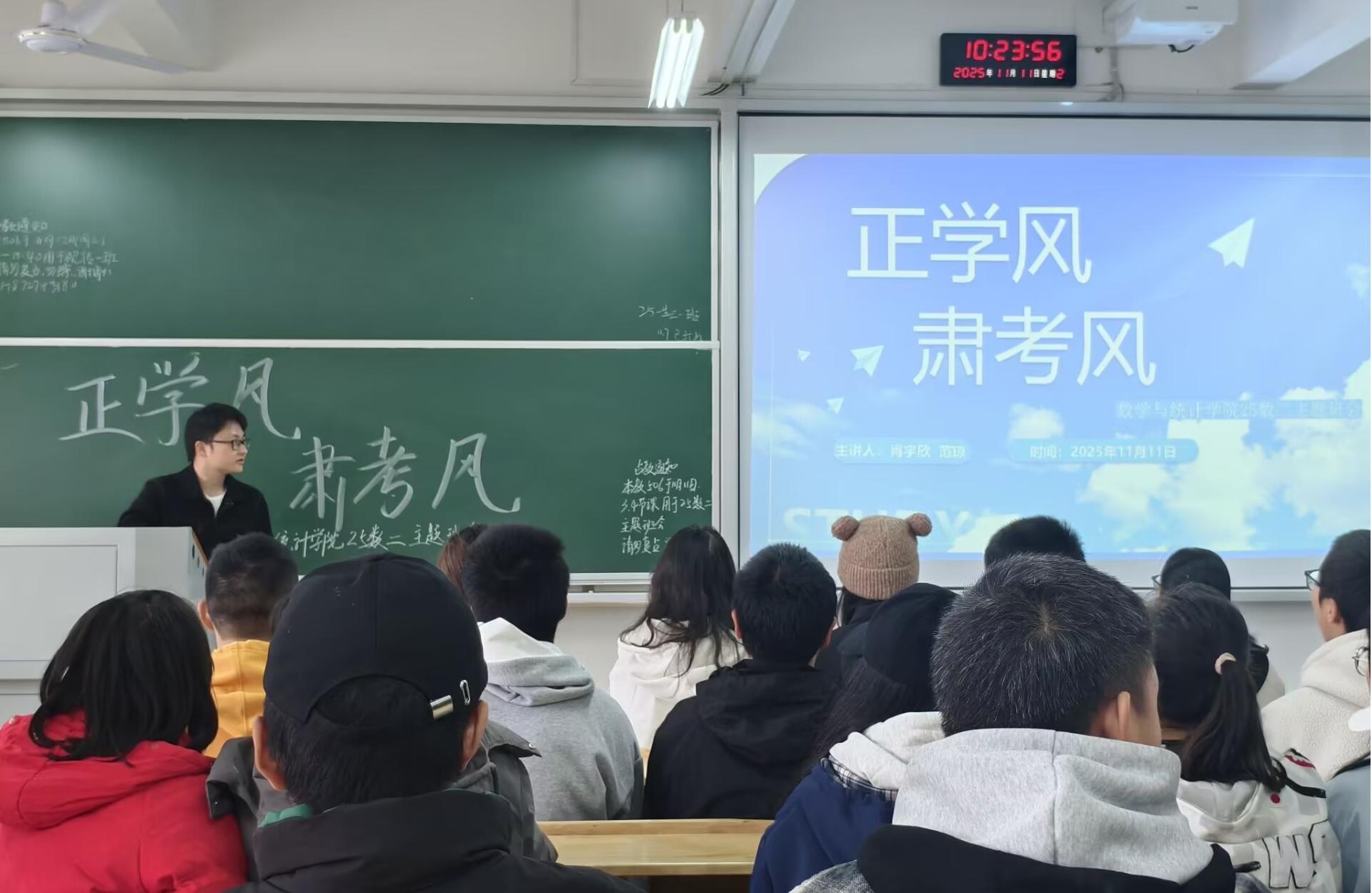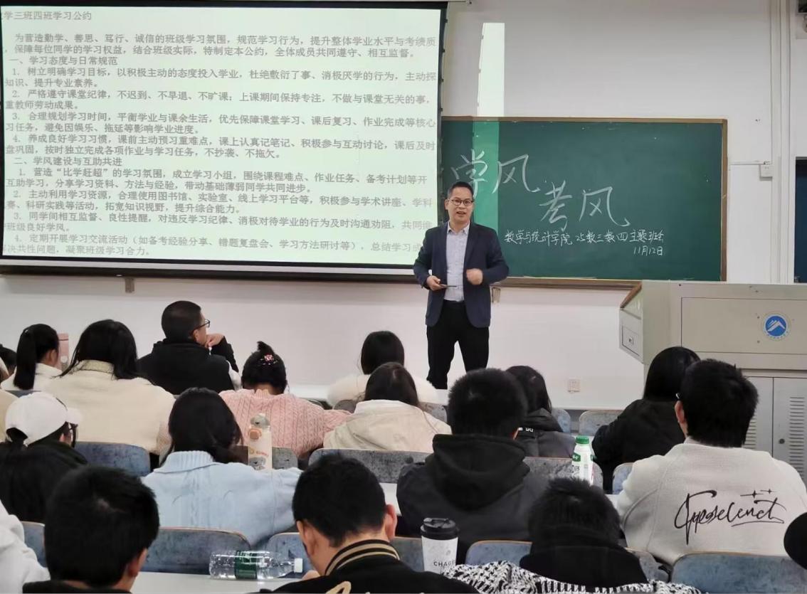 为营造“勤学、善思、求真、笃行”的优良学风,筑牢学术诚信根基,11月10日至14日,数学与统计学院组织全院各班级集中开展了“学风·考风”主题班会。本次活动旨在通过全员深度参与,引导学生将外在的学风要求内化为集体的共识与自觉行动。