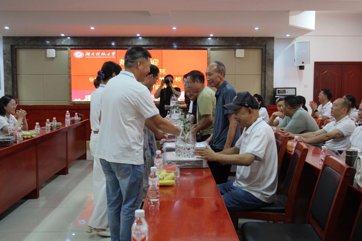 座谈会期间,校友代表代表全体返校校友,向到场的教师代表献上精心准备的礼物,以此表达对昔日恩师多年教诲的深深感激与崇高敬意。面对阔别多年的学子,在场教师们感慨万千,与校友们亲切交谈、共忆往昔,现场氛围温馨浓厚,动人至深。
