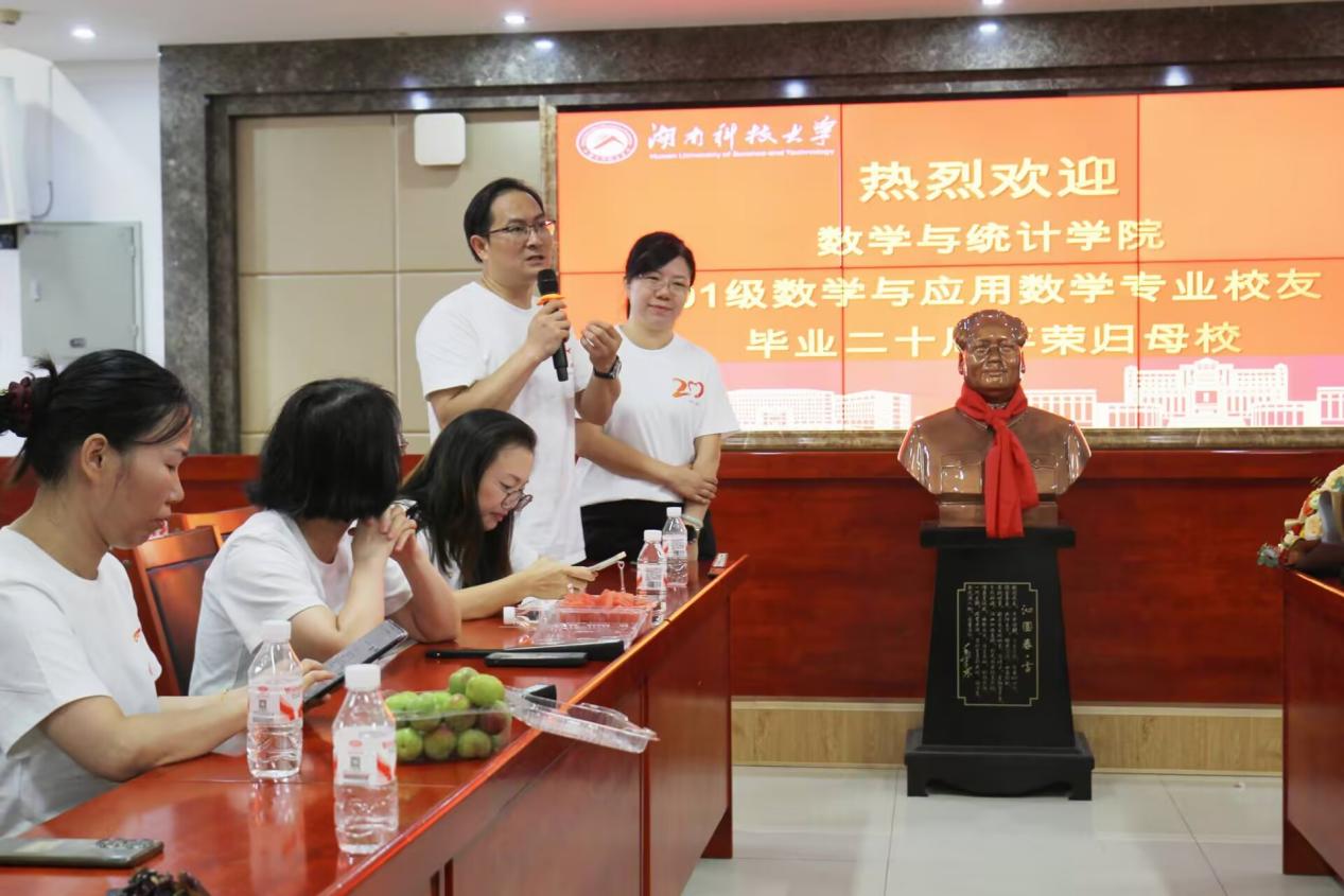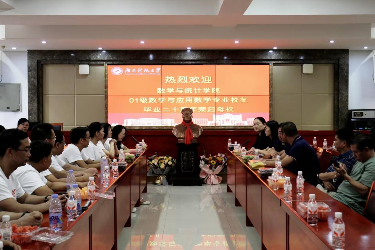 2025年8月3日上午,湖南科技大学数学与统计学院2001级数学与应用数学专业校友重返母校,毕业二十周年座谈会在立志楼A601会议室温情举行。学院领导与部分教师代表受邀出席,与校友们共叙师生情谊、共话学院发展。