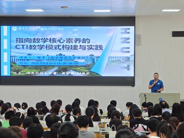 2025年9月16日,南京师范大学喻平教授应邀来我校开展题为“指向数学核心素养的CTI数学模式构建与实践”的学术讲座。讲座由数学与统计学院汪卫副院长主持,吸引了学科教学教师、研究生及中学数学教师、数学师范生等共同参与。