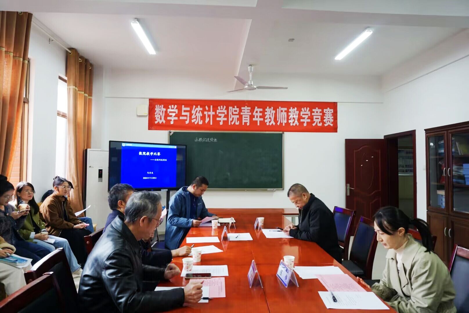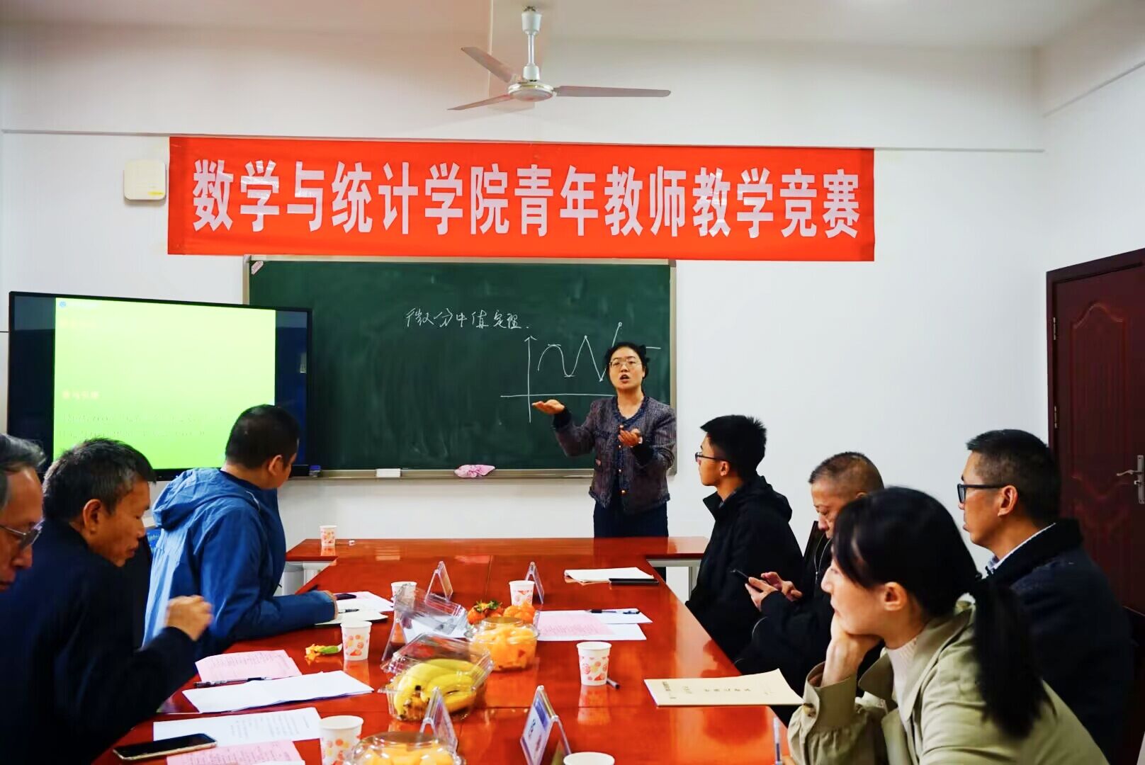 喜看杏坛填秀色,乐闻木铎振新声。为提高青年教师的教学水平和促进青年教师的职业发展,做到以赛促教、以赛促学、以赛促改,数学与统计学院于11月26日下午开展青年教师教学竞赛。本次竞赛由数学与统计学院副院长汪卫主持,校督导胡小平教授和数学与统计学院傅湘陵、陈佘喜、杨喜陶、陈静四位教授作为评委出席,马秀爽、黄绪兰、曾石林、黄建平、黄铮、骆丽夏、刘森立、崔煜苗、黄艳九位老师参赛。