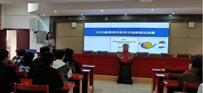 10月25日上午,我校在立志楼A601室举办湘江高端学术论坛“CAD曲面求交和布尔运算前沿进展”学术讲座。讲座由数学与统计学院李冬梅院长主持,数学与统计学院师生参加讲座。