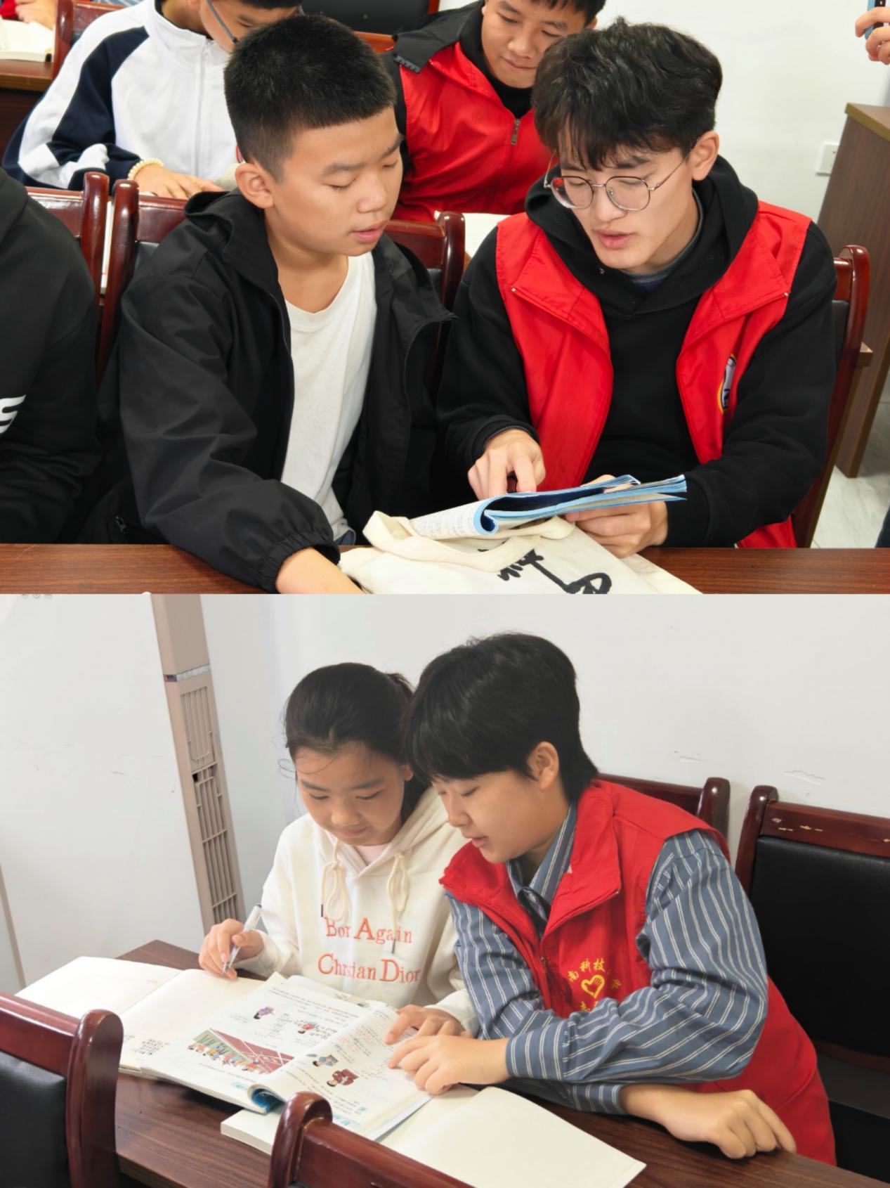 仪式结束后,志愿者们立即投入首场辅导活动。崭新课桌前,孩子们专注聆听;明亮教室里,志愿者耐心讲解。细声的教导与顿悟的笑声交织回荡,让“让阳光真正洒进孩子心里”的承诺化为现实,展开了七彩雷锋精神的生动画卷。