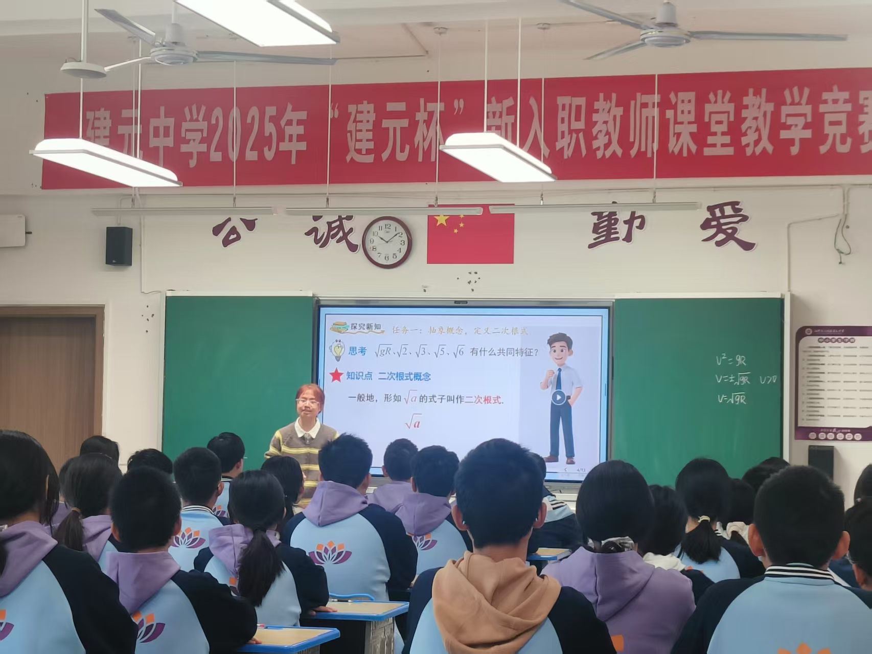 我院王卫兵副院长从学科专业角度,对教学内容的科学性和逻辑性给予了指导,并鼓励实习生们练好漂亮的粉笔字。龙文高主任对建元中学为实习生提供的优质平台和悉心指导表示衷心感谢,他勉励实习生们要珍惜机会,多听课、多备课、多反思,不仅要“站上讲台”,更要“站稳讲台、站好讲台”,将大学所学的理论知识与一线教学实践紧密结合起来。陈静老师与杨丽老师在对二次根式的概念阐述上进行了精彩的互动,作为带队教师,她还对实习生下一阶段的实习任务提出了明确要求。