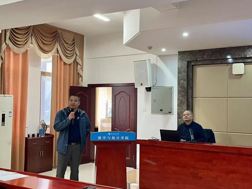 2025年11月11日上午,湖南科技大学数学与统计学院邀请优秀校友、湘潭市教科院周大明院长,在立志楼A601举办《中小学教师专业成长的策略与途径》专题讲座,为2022级数学与应用数学专业师范生开启《教育研习》序幕。活动由汪卫副院长主持,傅湘陵教授、湘潭市二中冯敏老师、丁爱霞副系主任及学生共同参与。