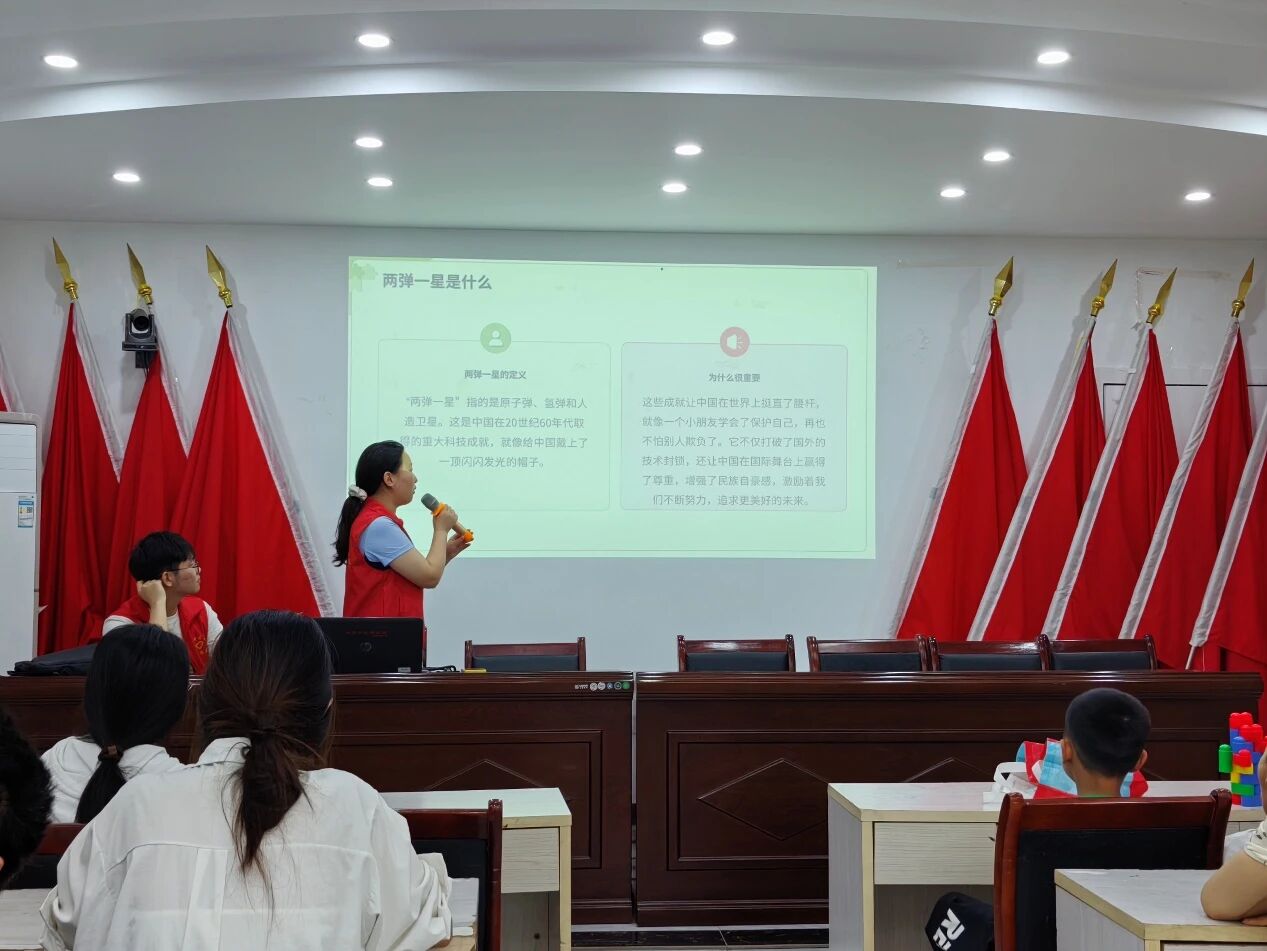 两弹一星“两弹一星”专题课堂以历史脉络为经纬,勾勒中国航天与核科技的崛起图景。志愿者朱彬雅、李权讲述科研团队隐姓埋名、攻坚克难的奋斗历程,展现从原子弹蘑菇云腾空到卫星划破苍穹的科技跨越,将“爱国奉献、自力更生”的精神内核转化为可感知、可触摸的教育元素,在孩子们心中播撒科技强国的种子。